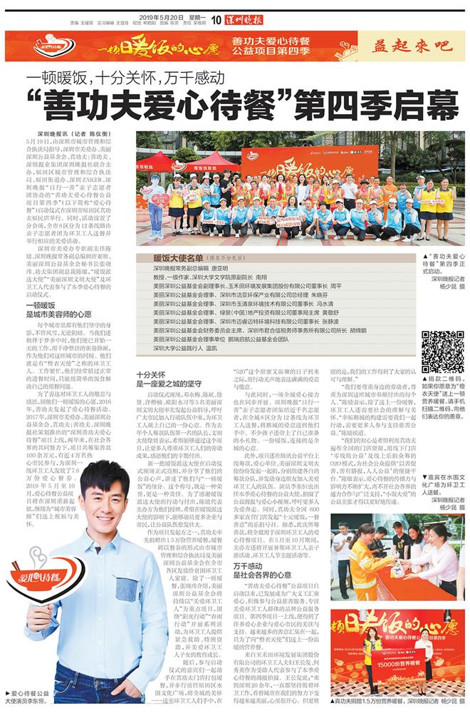 5月20日,《深圳晚报》等媒体对此次爱心待餐活动进行了详细的报道,对今年会jinnianhui环保公司和朱总的公益事迹给予了充分的肯定。