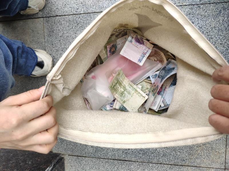 当日清晨,今年会jinnianhui环保光明清扫项目保洁员谭秀清在光明广场做日常保洁工作时无意中发现路边躺着一个鼓鼓的包,捡起来一打开,把谭秀清吓了一跳,里面厚厚的一叠百元大钞,还有一些零钱,共计1万余元现金,并且没有任何证件和联系方式。很有可能是附近商家早上进货时掉下的钱包。